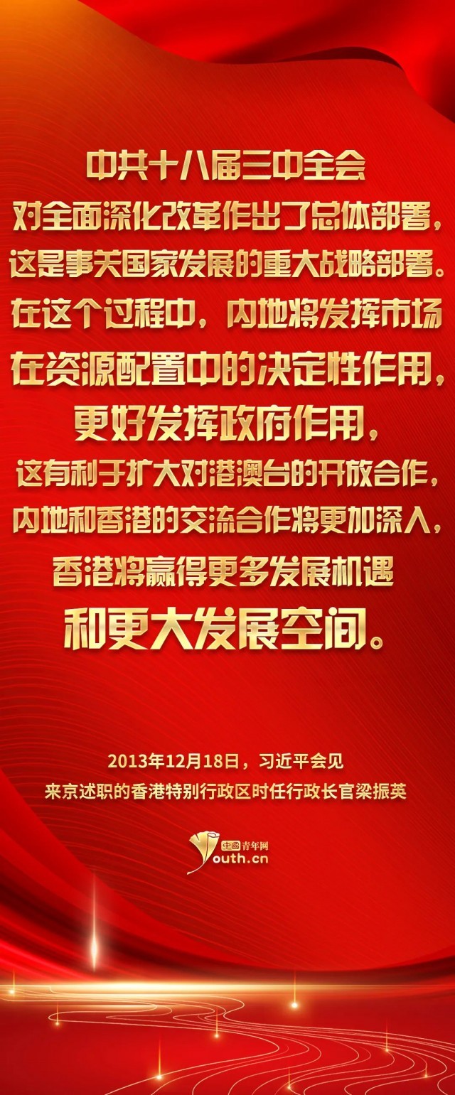 在以习近平同志为核心的党中央坚强领导下,香港必将以更大范围、更广领域和更深层次融入祖国建设的大好时代中来,在“一带一路”建设、全国统一大市场建设、粤港澳大湾区建设等方面做出表率。而发展的成果,必定惠及香港居民——说到这里,自然又回到了中国共产党“为中国人民谋幸福、为中华民族谋复兴”的初心和使命。