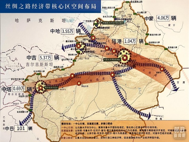 2014年4月新疆考察途中,总书记指出,“新疆在建设丝绸之路经济带中具有不可替代的地位和作用”。一个月后,中央政治局会议提出,“着力打造新疆丝绸之路经济带核心区”。