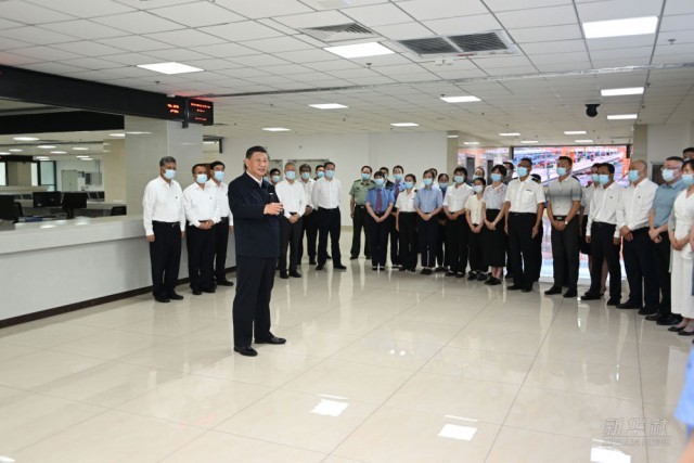 习近平总书记12日下午来到乌鲁木齐国际陆港区,听取整体情况介绍,通过实时画面察看中欧班列(乌鲁木齐)集结中心各功能区和阿拉山口口岸、霍尔果斯口岸现场作业情况,并同工作人员及现场办事人员亲切交流。