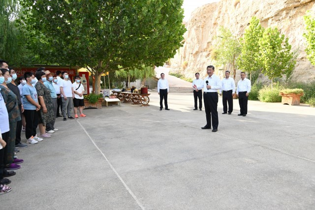 7月14日下午,习近平总书记来到新疆吐鲁番市,考察了交河故城,了解文化遗产保护利用等情况。