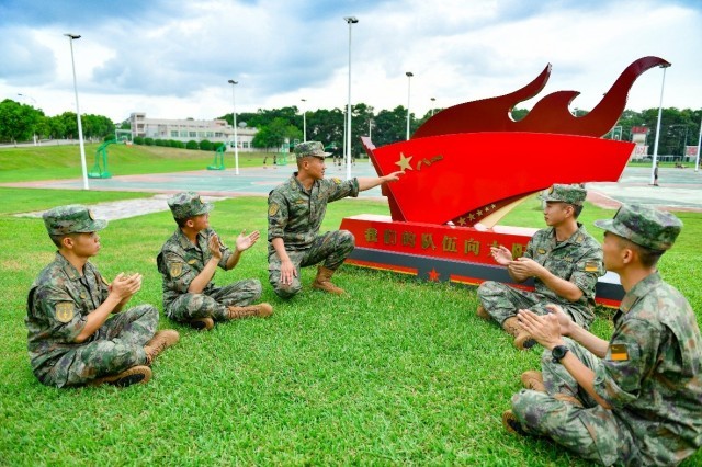 官兵们围坐一起听班长讲述历史。(图片由火箭军某部提供)