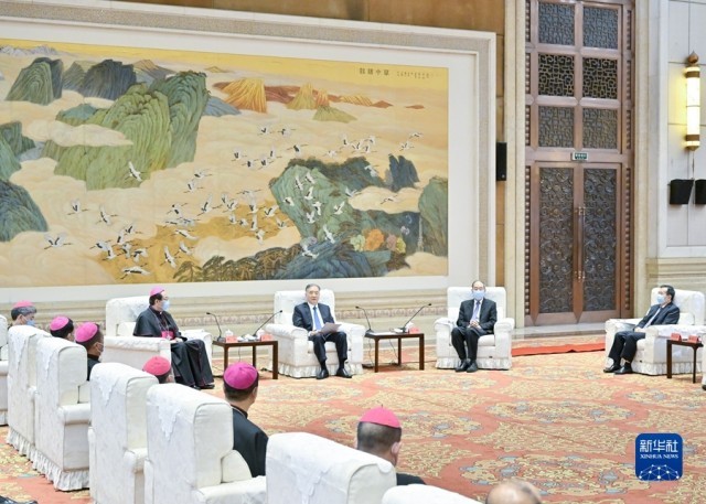 8月23日,中共中央政治局常委、全国政协主席汪洋在北京会见中国天主教爱国会、中国天主教主教团新一届领导班子成员。新华社记者 高洁 摄