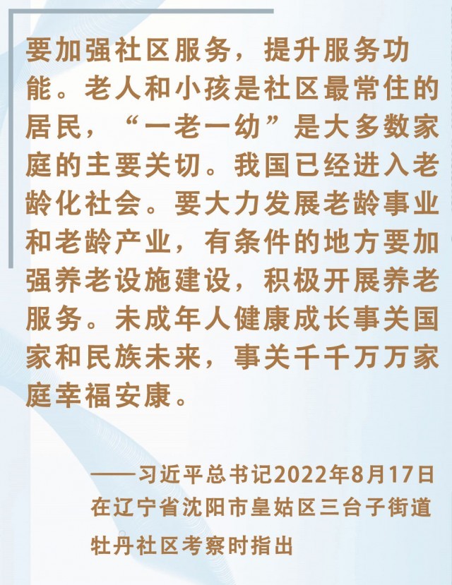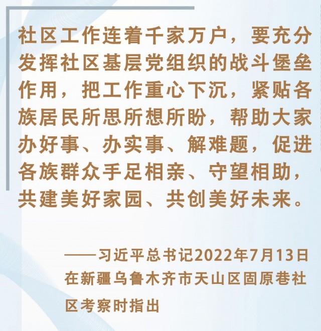 习近平总书记强调,社区工作是一门学问,要积极探索创新,通过多种形式延伸管理链条,提高服务水平,让千家万户切身感受到党和政府的温暖。