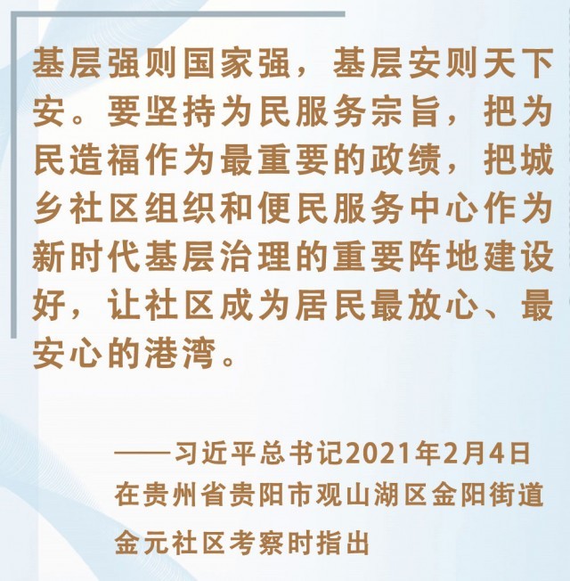 ↑2021年2月4日,习近平在贵州省贵阳市观山湖区金阳街道金元社区考察社区开展便民服务、加强基层党建工作情况。