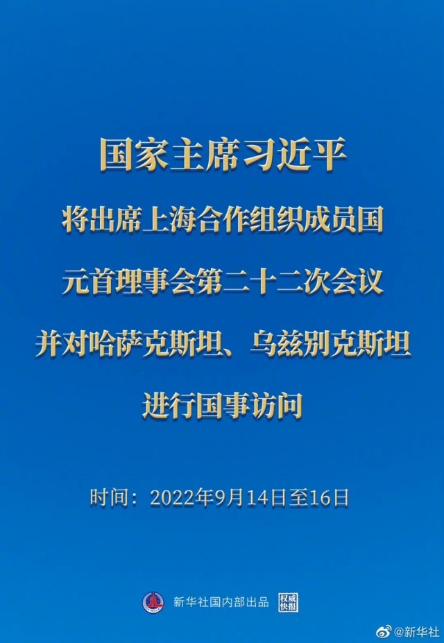 习近平将出席上海合作组织成员国元首理事会第二十二次会议并对哈萨克斯坦、乌兹别克斯坦进行国事访问