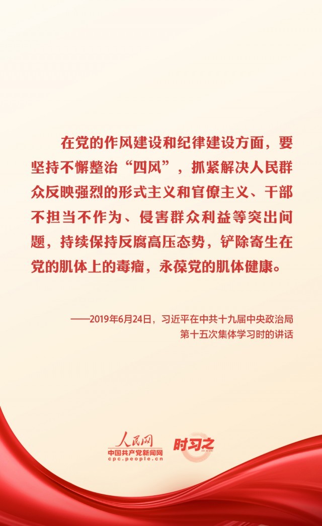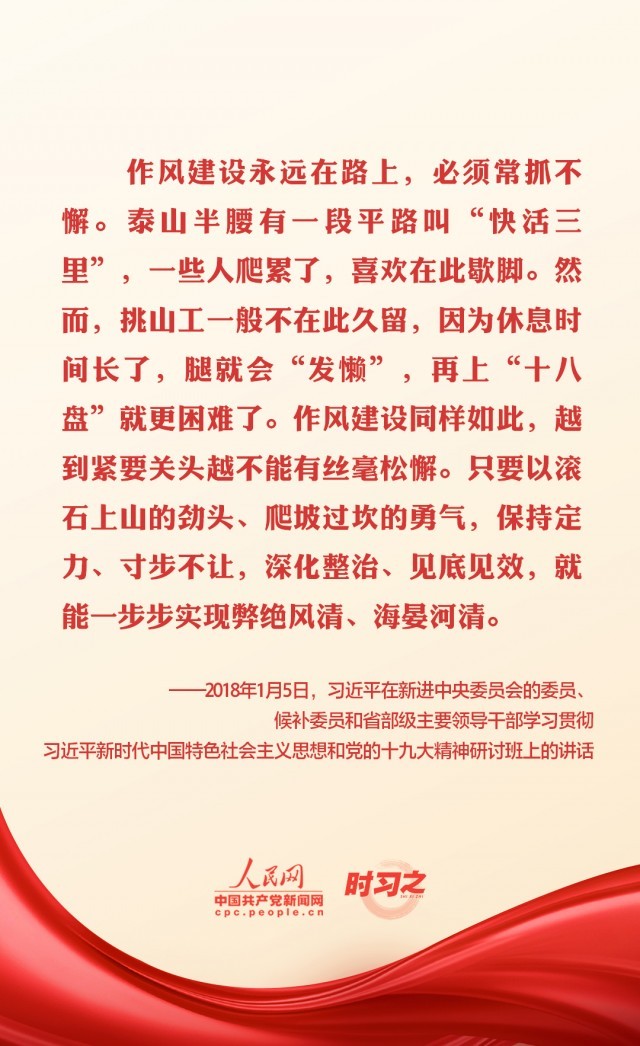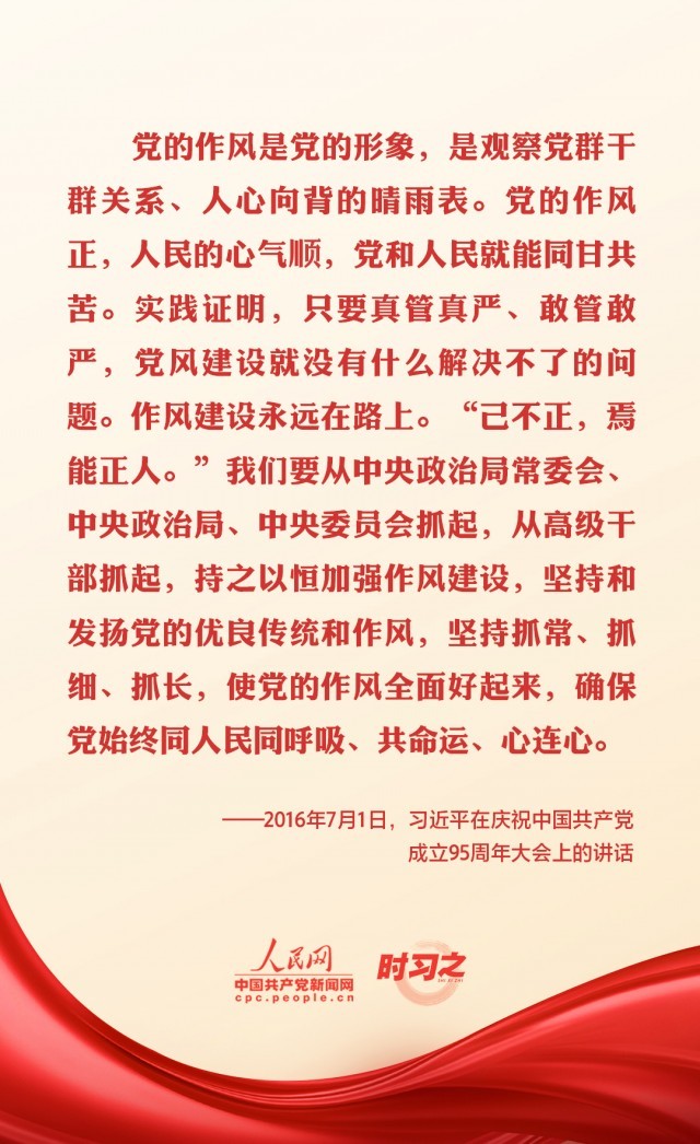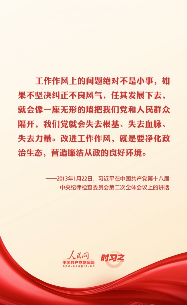 “党的作风就是党的形象,关系人心向背,关系党的生死存亡。”长期以来,习近平总书记关于加强作风建设特别是深入落实中央八项规定精神、坚持不懈纠正“四风”的重要论述,深化了对马克思主义执政党作风建设的规律性认识,赋予了新的时代内涵,为新形势下加强和改进党的作风建设提供了基本遵循和行动指南。