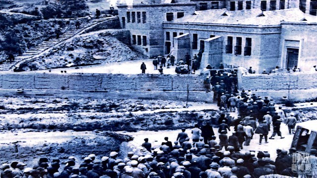 △中共七大代表进入会场的老照片。(总台央视记者卢心雨提供)