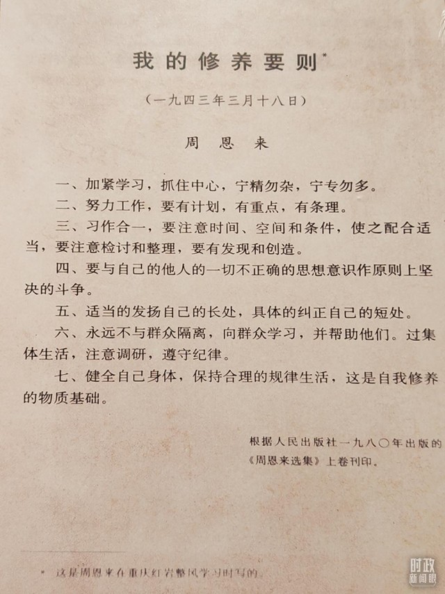 △周恩来所写《我的修养要则》。(总台央视记者彭汉明拍摄)
