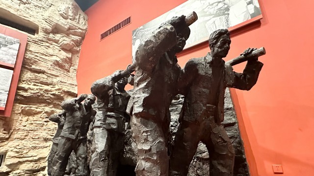 △红旗渠纪念馆,重现当年修建场景的雕塑。(总台央视记者范一鸣拍摄)