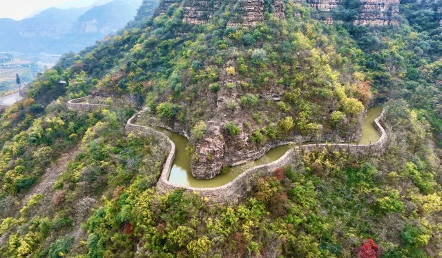 △蜿蜒在太行山腰的红旗渠。(总台央视记者程铖拍摄)
