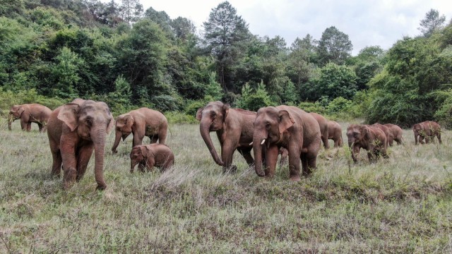 ↑这是在云南省昆明市晋宁区双河彝族乡拍摄的野象(2021年6月3日摄)。
