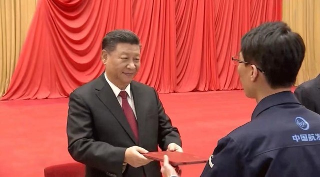 △2020年11月24日,在全国劳动模范和先进工作者表彰大会上,习近平总书记向全国劳动模范和先进工作者代表颁发荣誉证书。
