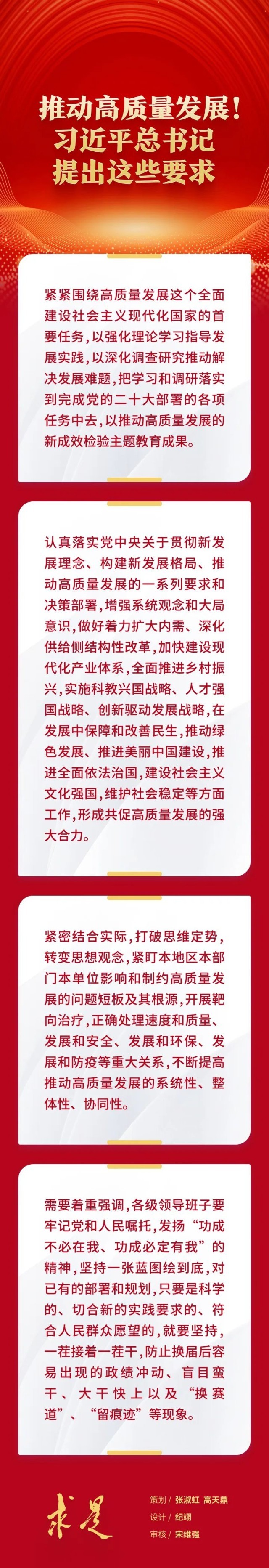 在2023年第9期《求是》杂志刊发的习近平总书记重要文章《在学习贯彻习近平新时代中国特色社会主义思想主题教育工作会议上的讲话》中,总书记对推动高质量发展提出明确要求。