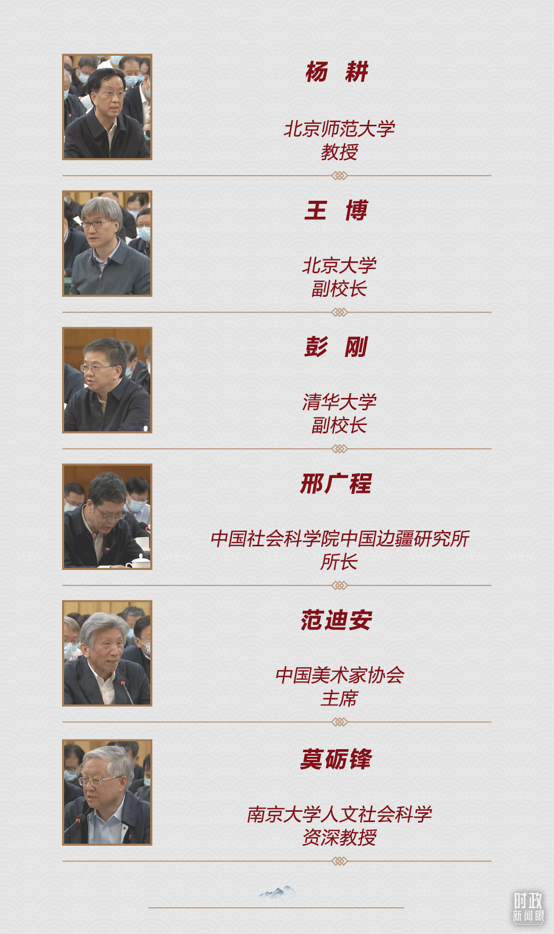 6月2日下午,考察结束后,习近平总书记在中国历史研究院出席文化传承发展座谈会。这也是近一个月以来总书记出席的第三场座谈会。6位专家学者在会上发言。