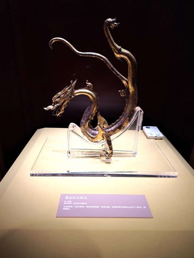 △鎏金铁芯铜龙,唐朝。(总台央视记者彭汉明拍摄)