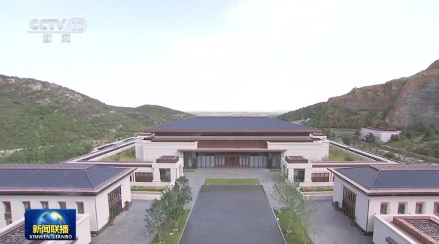 中国国家版本馆中央总馆所在地北京市昌平区兴寿镇,这里原为废弃采石场,三面环山,地质条件良好,建设场馆时依山就势,变废为宝。