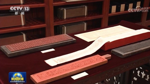 ▲图为习近平总书记参观的“汉藏蒙满文大藏经雕版合璧”库展展品。