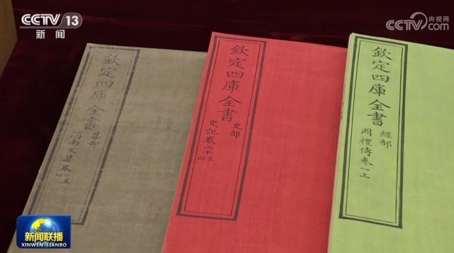 ▲图为总书记参观的“《四库全书》合璧”库展展品。
