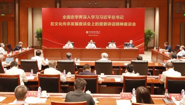 来自中国社会科学院、清华大学、中国人民大学、北京师范大学、中国政法大学、中央民族大学、中国第一历史档案馆、南开大学、武汉大学、云南大学等高校和科研机构的60多位专家学者参加座谈会,专家学者们围绕习近平总书记关于中华优秀传统文化的重要论述、发展中国特色社会主义文化、激活中华优秀传统文化生命力、推进历史文化创造性转化创新性发展等重大理论问题展开研讨,一致表示要深入学习习近平总书记在文化传承发展座谈会上的重要讲话精神,始终以习近平新时代中国特色社会主义思想指导历史研究,以饱满的热情投入到新时代历史学研究工作中,担负起新的文化使命,为建设中华民族现代文明、全面建设社会主义现代化国家、全面推进中华民族伟大复兴作出史学贡献。