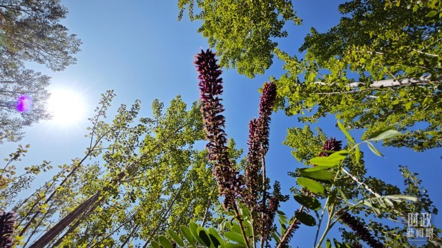 △巴彦淖尔临河区国营新华林场内种植的紫穗槐和小叶杨。(总台央视记者许永松拍摄)