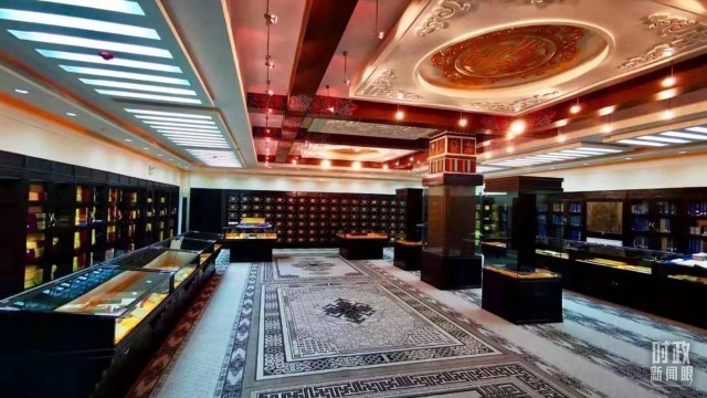 △内蒙古大学蒙古文古籍展阅室。(总台央视记者荆伟拍摄)