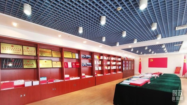 △内蒙古自治区自然资源厅党员活动室。2019年7月,习近平总书记曾在这里调研指导自然资源厅开展“不忘初心、牢记使命”主题教育。(总台央视记者张晓鹏拍摄)