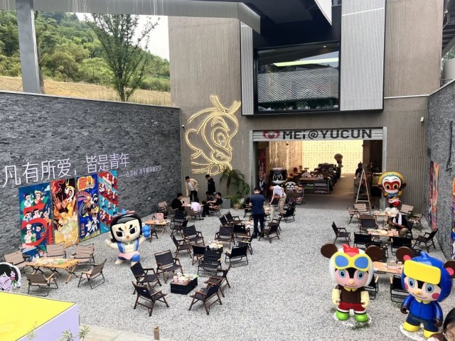 在浙江省湖州市安吉县天荒坪镇余村拍摄的国漫主题咖啡店。锐聆 摄