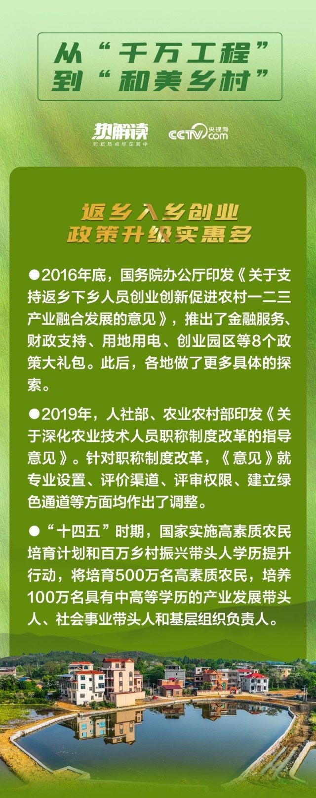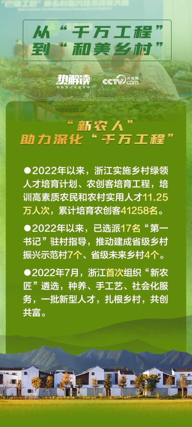 央视网《热解读》栏目特别策划“从‘千万工程’到‘和美乡村’”系列解读文章,紧扣乡村振兴战略“产业兴旺、生态宜居、乡风文明、治理有效、生活富裕”总要求,全面展现新时代中国多措并举建设宜居宜业和美乡村的生动实践。