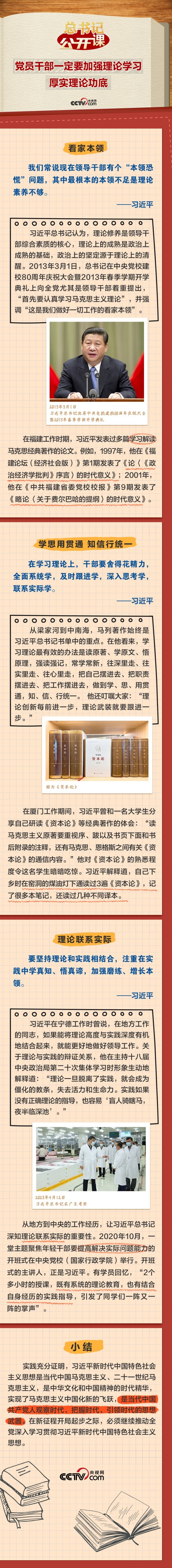 习近平总书记高度重视对党员干部理论学习能力的培养。他说:“党员干部一定要加强理论学习、厚实理论功底,自觉用新时代党的创新理论观察新形势、研究新情况、解决新问题,使各项工作朝着正确方向、按照客观规律推进。”这一期《总书记“公开课”》聚焦总书记关于理论学习的深邃思考,让我们一起领悟。