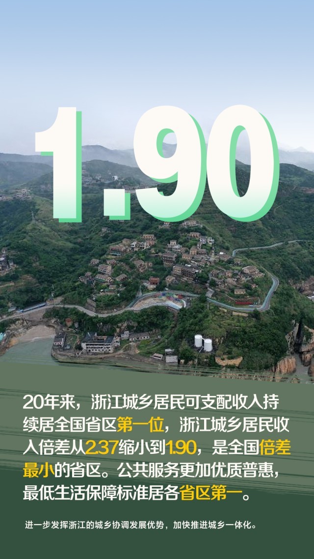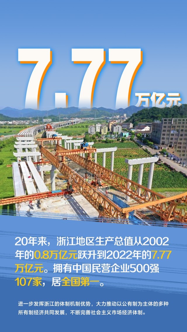 干在实处、走在前列、勇立潮头 ,今年是“八八战略”实施20周年。2003年7月,时任浙江省委书记习近平提出,要进一步发挥八个方面的优势、推进八个方面的举措,即“八八战略”,指引浙江走出改革创新开放图强之路。 20年来,浙江一张蓝图绘到底,经济社会发展取得新的历史性成就,八个方面的数据带您重温之江大地的精彩蝶变。