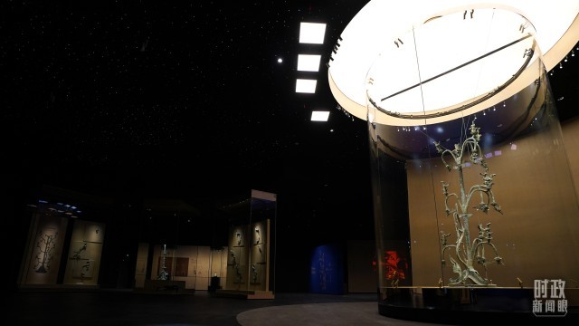 △三星堆出土的青铜神树。(总台国广记者李晋拍摄)