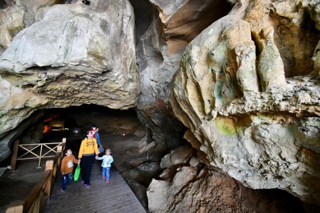 游人在位于福建省三明市三元区岩前镇的万寿岩遗址船帆洞游览(2020年4月9日摄)。新华社记者 姜克红 摄