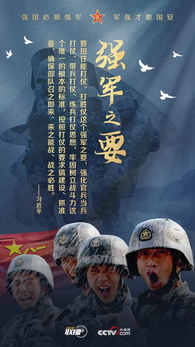 党的十八大以来,习近平主席始终高度重视国防和军队建设,为全军擘画强军兴军蓝图、指引奋进方向。值此中国人民解放军建军96周年之际,央视网《联播+》栏目制作强军海报,与您一起学习习主席的强军思想。