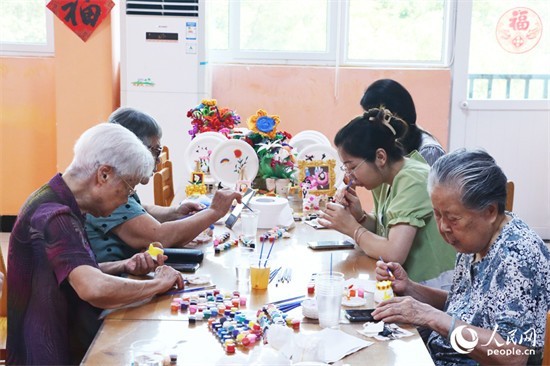 福利院的老人们正在上手工课。人民网记者 刘卿摄