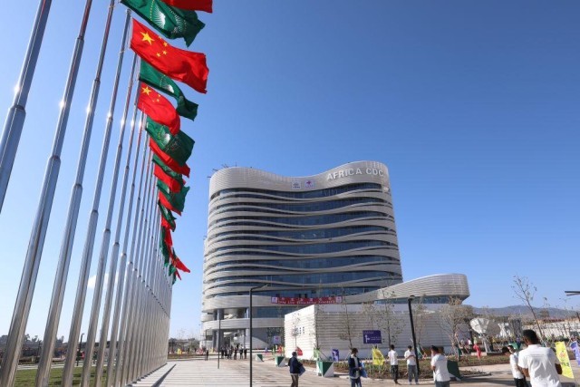 △2023年1月11日,中国援非盟非洲疾病预防控制中心总部(一期)项目正式竣工。图为位于埃塞俄比亚首都亚的斯亚贝巴的非洲疾控中心总部大楼。
