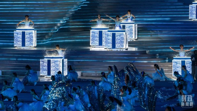 △开幕式迎宾表演《水润秋辉》。(总台央视记者魏帮军拍摄)