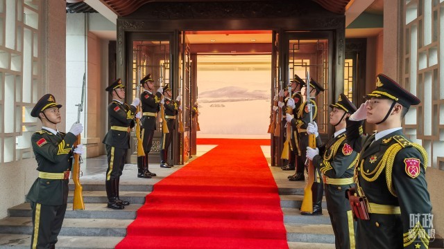 △双边会场外的礼兵。(总台央视记者周志国拍摄)