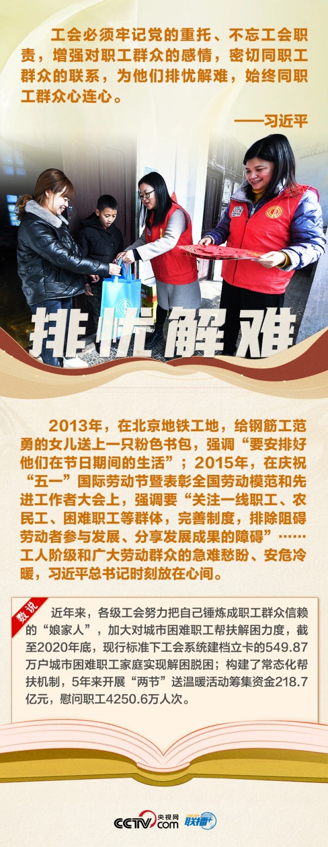 工人阶级是我们党最坚实最可靠的阶级基础,工运事业是党的事业的重要组成部分,工会工作是党治国理政的一项经常性、基础性工作。党的十八大以来,习近平总书记多次出席劳动者活动,同普通工人谈心,给劳模回信,为广大劳动群众焕发工人阶级主人翁精神注入强劲动力。