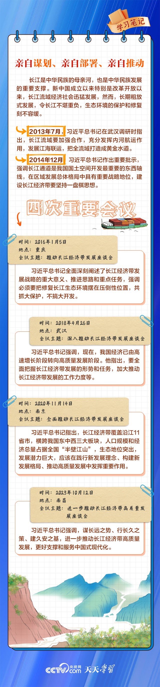 长江是中华民族的母亲河,是中华民族发展的重要支撑。党的十八大以来,习近平总书记高度关注长江经济带的每一步发展,足迹踏遍沿线11省市。近8年来,总书记先后主持召开4次长江经济带发展座谈会,从全局高度和长远角度为长江经济带高质量发展明确了目标任务、指明了前进方向,确保一江清水绵延后世、惠泽人民。