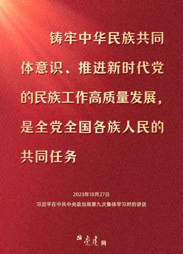 中共中央政治局10月27日下午就铸牢中华民族共同体意识进行第九次集体学习,习近平总书记主持学习并发表重要讲话。快来一图学习总书记关于铸牢中华民族共同体意识的精彩论述!