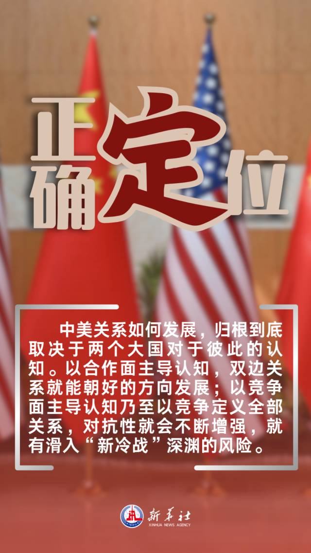 中美关系如何发展,归根到底取决于两个大国对于彼此的认知。以合作面主导认知,双边关系就能朝好的方向发展;以竞争面主导认知乃至以竞争定义全部关系,对抗性就会不断增强,就有滑入“新冷战”深渊的风险。当下美方理顺对华关系,关键是树立正确的对华认知,走出零和博弈思维,积累扩大合作面,持续推动中美关系稳下来、好起来。