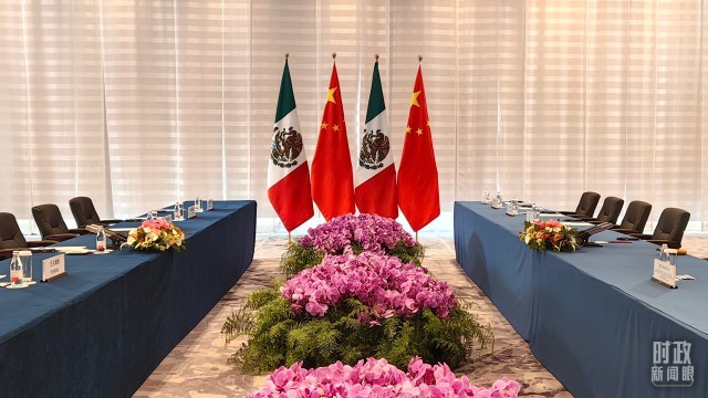 △中墨两国会谈开始前的现场。(总台央视记者杨波拍摄)