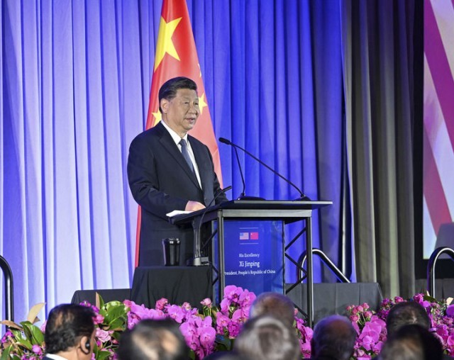 当地时间11月15日晚,国家主席习近平在美国旧金山出席美国友好团体联合举行的欢迎宴会。这是习近平发表重要演讲。