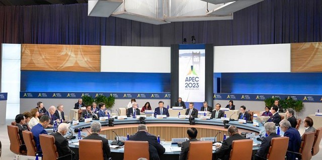 △当地时间11月17日上午,习近平主席在美国旧金山出席亚太经合组织第三十次领导人非正式会议。