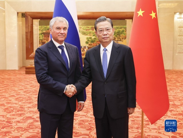 沃洛金表示,普京总统同习近平主席就不断深化俄中全面战略协作伙伴关系达成重要共识,引领两国关系发展处于历史最好水平。俄坚定奉行一个中国原则。俄国家杜马各党团一致支持不断发展对华友好关系。俄国家杜马愿与中国全国人大共同努力,通过立法等形式落实好两国元首达成的共识,发挥俄中议会合作委员会的积极作用,为促进两国务实合作提供法律保障,增进俄议员与中国人大代表之间、两国人民之间的相互了解和友谊,为促进俄中关系发展作出贡献。