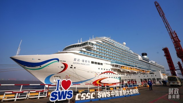 △中国首制大型游轮——爱达·魔都号。(总台央视记者刘琦拍摄)