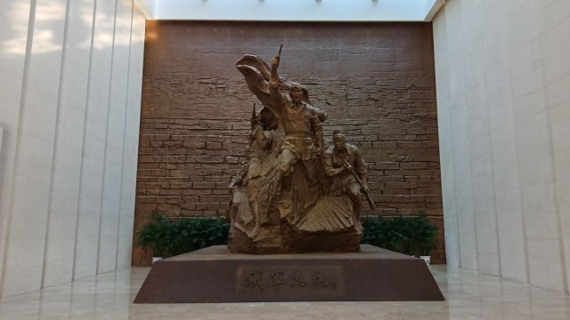 △新四军纪念馆里的雕塑“铁军忠魂”。(总台央视记者郭鸿拍摄)