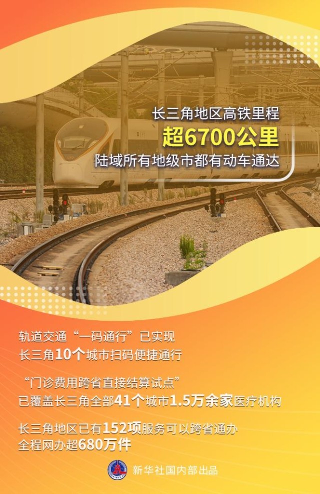 基础设施“一张网”:长三角地区高铁里程超6700公里,陆域所有地级市都有动车通达。