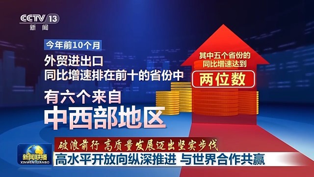 高水平开放,也让曾经的开放“末梢”变成“前沿”。最新数据显示,今年前10个月,外贸进出口同比增速排在前十的省份中,有六个来自中西部地区。其中五个省份的同比增速达到两位数。