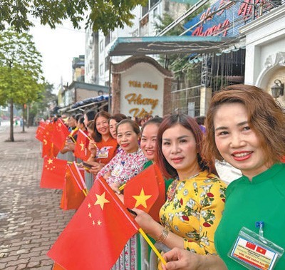 12月12日,在越南首都河内,民众欢迎中国贵宾。本报记者 孙广勇摄